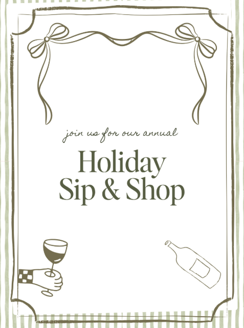 Join us for our Holiday Sip & Shop on December 11th from 5-8pm, featuring 15% off all F&F products and complimentary cocktails and mocktails!
