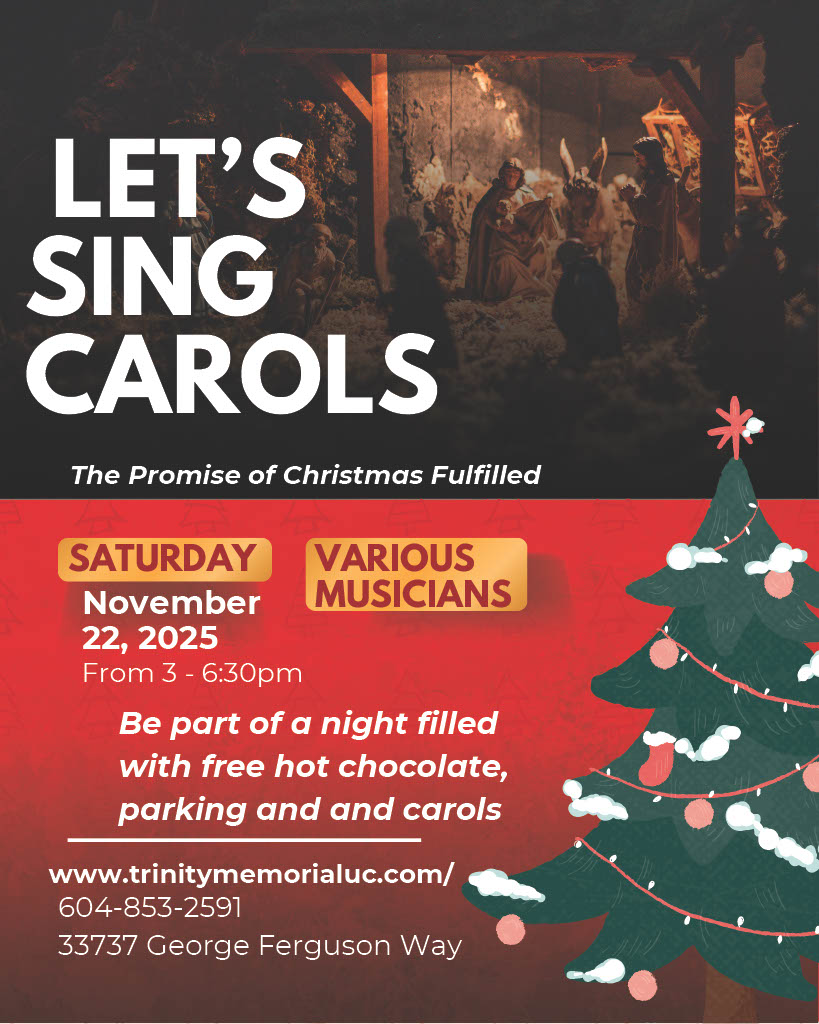 22nov3:00 pm6:30 pmLet's Sing CarolsThe Promise of Christmas Fulfilled at Trinity Memorial United Church