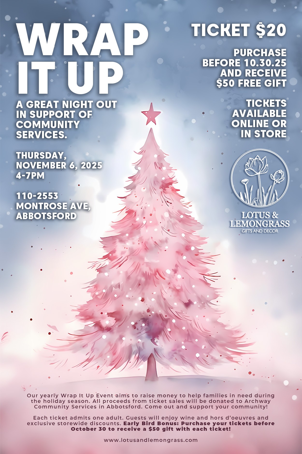 Each ticket admits one adult. 100% of ticket sales will be donated to Community Services in Abbotsford, helping local families in need this holiday season. Let’s celebrate, shop, and make a difference together!